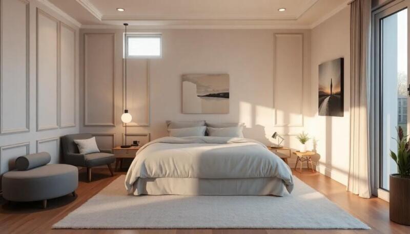 Además, es importante considerar la insonorización de ventanas y puertas, utilizando burletes para evitar que el ruido exterior se filtre en el dormitorio.